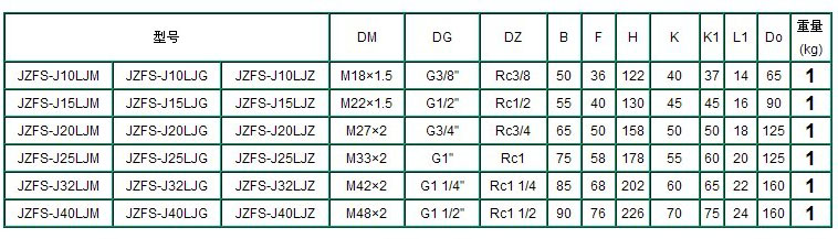 四、使用及订货注意事项 1、本系列截止阀为座阀式结构,略加开启,过流面积就较大,节流效果差,故不推荐节流阀使用。本厂另有LF型节流阀,欢迎使用。 2、本系列截止阀的连接方式、螺纹品种较多,订货时请务必完整写明型号的每个代号。 例如:公称通径20mm,直通公制细牙螺纹的截止阀型号:JZFS-J20LTM 公称通径32mm,水平板式安装的截止阀型号: JZFS-J32BⅡ 3、如有特殊要求,请与本厂商洽,文字表达不清楚的,须提供局面技术资料(如草图)。